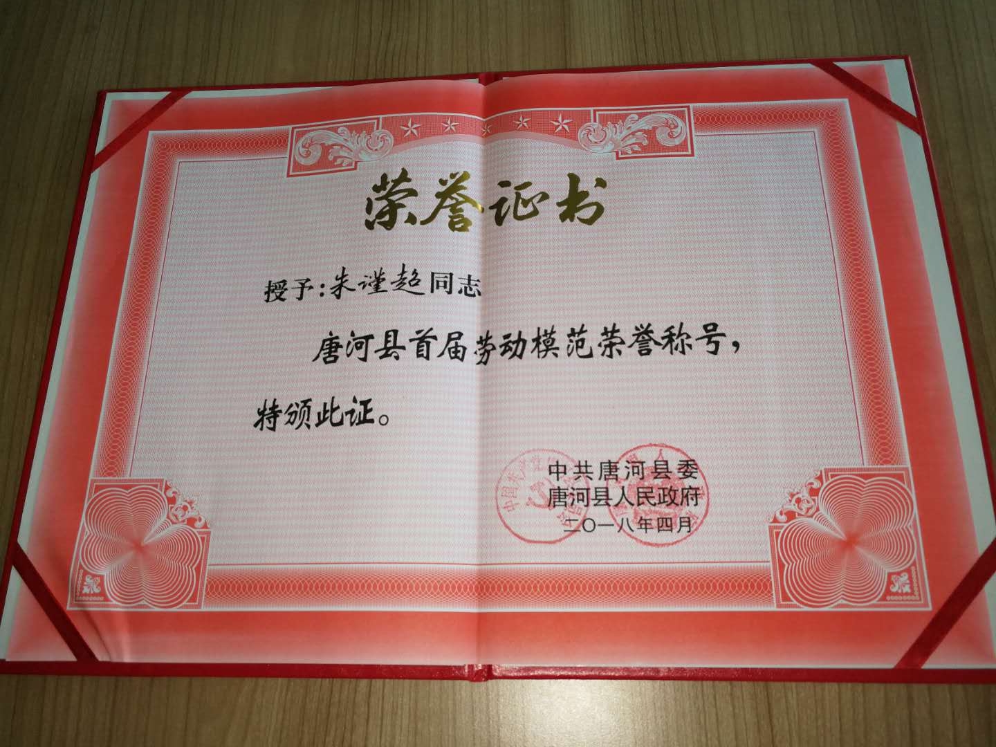 在“五·一”來臨之際,唐河縣委、唐河縣人民政府為首屆勞動模范頒發(fā)了榮譽證書及獎?wù)隆啺哪详柟局熘敵鞠搏@殊榮。