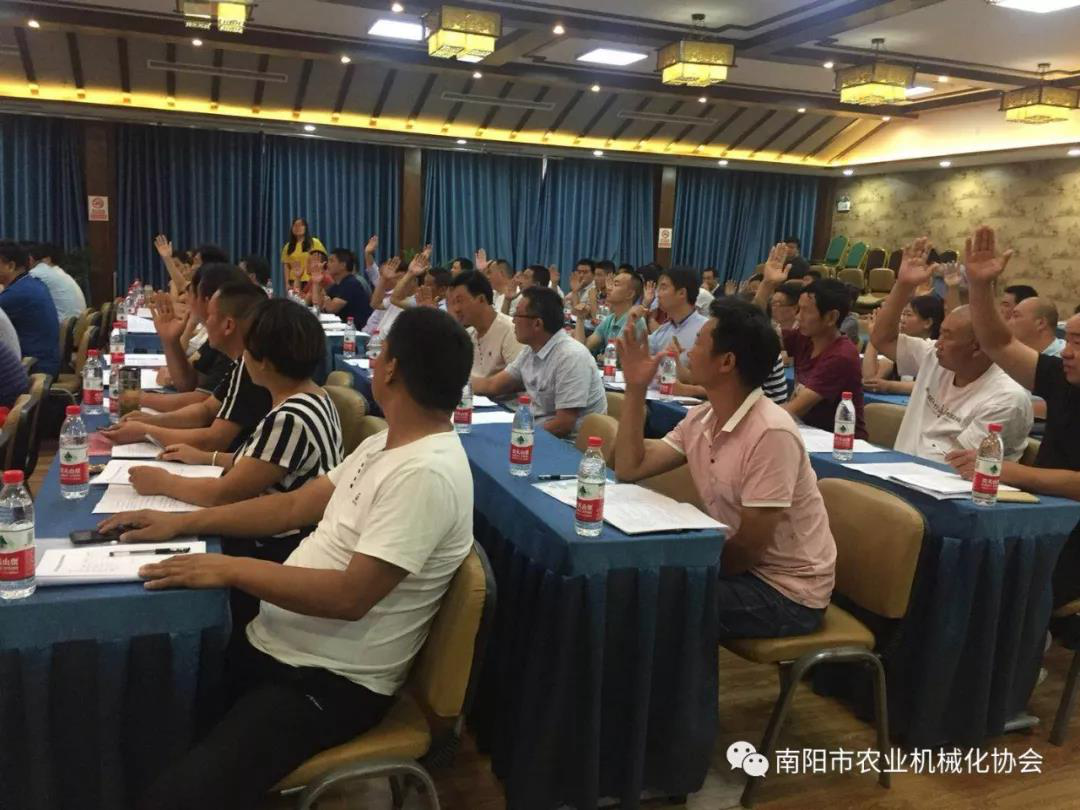 7月3日,南陽(yáng)市農(nóng)業(yè)機(jī)械化協(xié)會(huì)成立大會(huì)在南陽(yáng)市鷗凱印象酒店3樓會(huì)議室召開(kāi),南陽(yáng)市農(nóng)業(yè)機(jī)械化管理局黨組書(shū)記、局長(zhǎng)劉勤同志出席會(huì)議并做重要講話。選舉通過(guò)田云鎖(原南陽(yáng)市農(nóng)業(yè)機(jī)械公司總經(jīng)理)同志當(dāng)選為會(huì)長(zhǎng),亞澳南陽(yáng)農(nóng)機(jī)有限責(zé)任公司總經(jīng)理史炳哲、南陽(yáng)奇豐機(jī)械有限責(zé)任公司董事長(zhǎng)趙順奇、鎮(zhèn)平縣糧豐農(nóng)機(jī)農(nóng)民專(zhuān)業(yè)合作社理事長(zhǎng)薛云濤當(dāng)選為副會(huì)長(zhǎng)。
