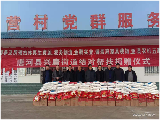 捐贈(zèng)儀式上產(chǎn)業(yè)集聚區(qū)黨委書記劉清文、主任李國營(yíng)代表興唐街道黨委、政府向五家企業(yè)的義舉表示感謝。他指出,以亞澳農(nóng)機(jī)為首的這五家公司,在完成自身企業(yè)負(fù)責(zé)包片貧困村脫貧的基礎(chǔ)上,還能再拿出現(xiàn)金3000元捐資扶貧,將自己的社會(huì)責(zé)任意識(shí),由助力脫貧攻堅(jiān),走向現(xiàn)在回饋社會(huì)。代表著我縣企業(yè)經(jīng)營(yíng)由起步走向成熟。他希望廣大困難群眾正確面對(duì)暫時(shí)的困難,樹立戰(zhàn)勝貧困、走出困境的信心和勇氣,發(fā)揚(yáng)自力更生、艱苦奮斗的精神,不等不靠,在黨委、政府和社會(huì)各界的支持和幫助下,以自身的努力和實(shí)干來化解生產(chǎn)、生活中的各種困難,為構(gòu)建美麗和諧的新唐河作出自己的貢獻(xiàn)。