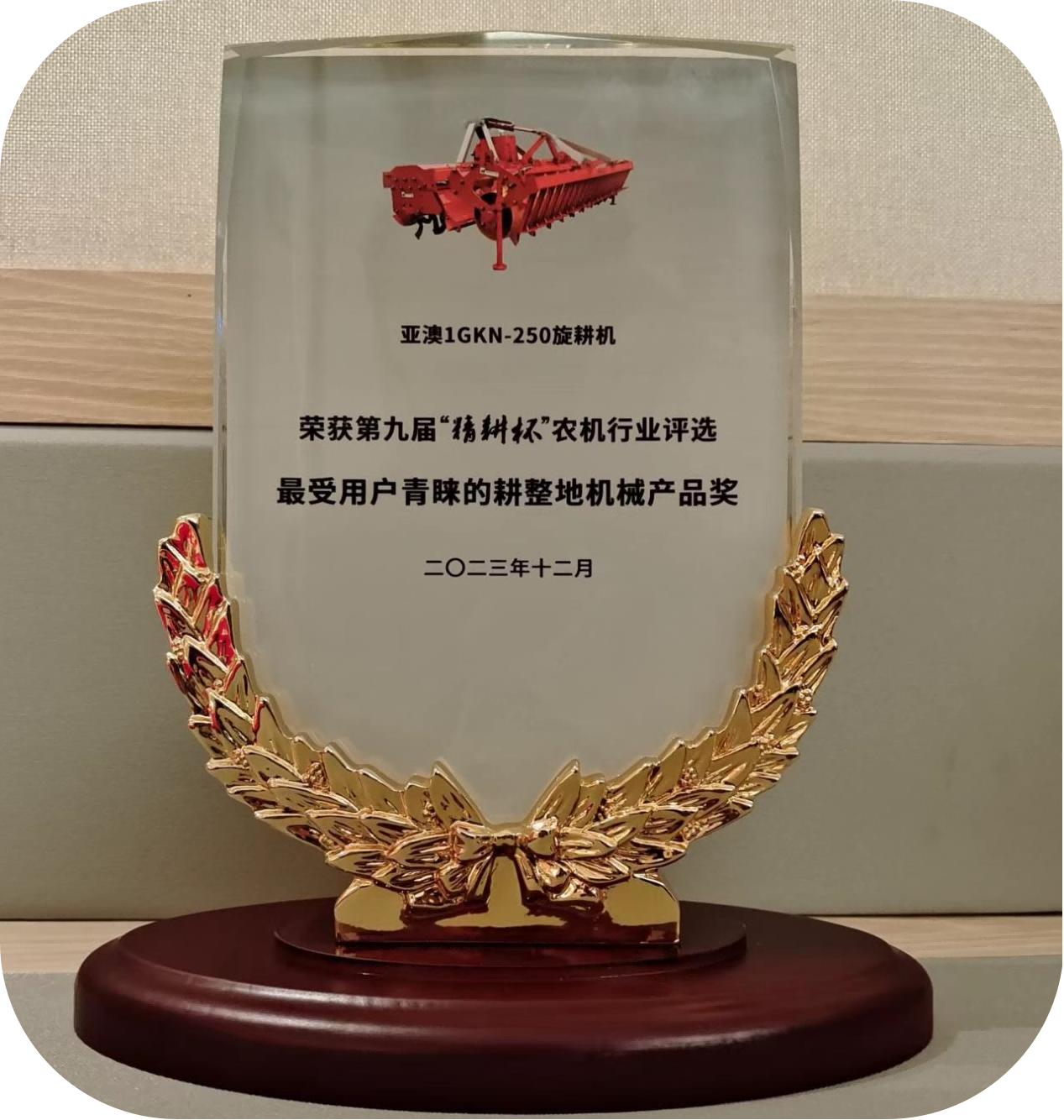 亞澳1GKN-250旋耕機榮獲最受用戶青睞的耕整地機械產(chǎn)品獎