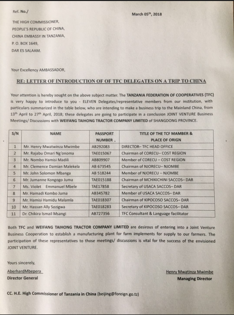 2018年4月20日上午,坦桑尼亞合作社(TFC)聯(lián)合會成員一行11人受邀蒞臨亞澳農(nóng)機(jī)考察農(nóng)業(yè)合作項(xiàng)目。唐河縣政府領(lǐng)導(dǎo)狄付長、縣農(nóng)機(jī)局方振副局長及亞澳農(nóng)機(jī)史炳哲總經(jīng)理全程陪同。