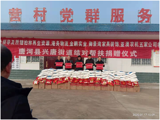 捐贈(zèng)儀式上產(chǎn)業(yè)集聚區(qū)黨委書記劉清文、主任李國營(yíng)代表興唐街道黨委、政府向五家企業(yè)的義舉表示感謝。他指出,以亞澳農(nóng)機(jī)為首的這五家公司,在完成自身企業(yè)負(fù)責(zé)包片貧困村脫貧的基礎(chǔ)上,還能再拿出現(xiàn)金3000元捐資扶貧,將自己的社會(huì)責(zé)任意識(shí),由助力脫貧攻堅(jiān),走向現(xiàn)在回饋社會(huì)。代表著我縣企業(yè)經(jīng)營(yíng)由起步走向成熟。他希望廣大困難群眾正確面對(duì)暫時(shí)的困難,樹立戰(zhàn)勝貧困、走出困境的信心和勇氣,發(fā)揚(yáng)自力更生、艱苦奮斗的精神,不等不靠,在黨委、政府和社會(huì)各界的支持和幫助下,以自身的努力和實(shí)干來化解生產(chǎn)、生活中的各種困難,為構(gòu)建美麗和諧的新唐河作出自己的貢獻(xiàn)。