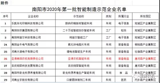 南陽市2020年第一批智能制造示范企業(yè)名單公布, 亞澳農(nóng)機(jī)入選