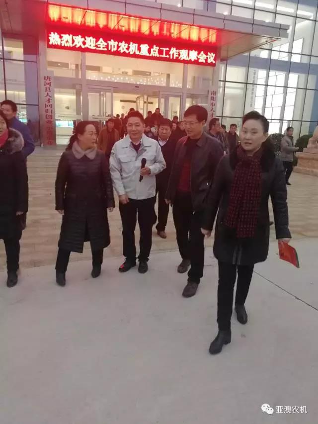 2017年12月13日,南陽(yáng)市農(nóng)機(jī)局劉勤局長(zhǎng)在縣政府馬俊宏副縣長(zhǎng)、縣農(nóng)機(jī)局張凌局長(zhǎng)陪同下帶領(lǐng)參加全市農(nóng)機(jī)重點(diǎn)工作的市、各縣農(nóng)機(jī)系統(tǒng)領(lǐng)導(dǎo)及各縣屬專(zhuān)業(yè)農(nóng)機(jī)合作社人員,來(lái)到亞澳農(nóng)機(jī)觀(guān)摩指導(dǎo)。