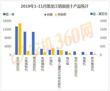 以平原為主的黑龍江地區(qū),輪式拖拉機(jī)、水稻插秧機(jī)和埋茬起漿機(jī)的銷量均比較高,其中銷售額最高的是輪式拖拉機(jī),其貢獻(xiàn)率超50%。